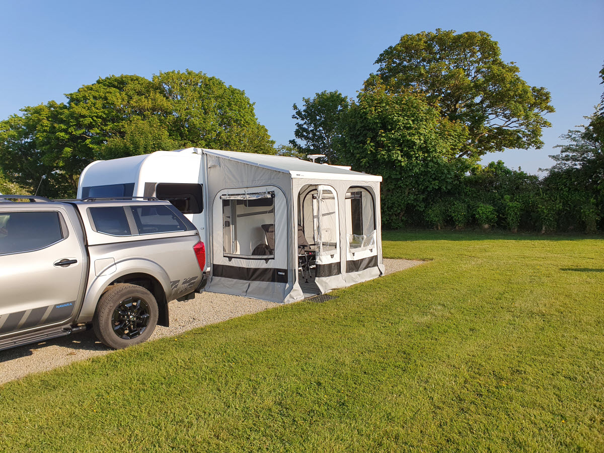 and grows 18 inches wider than even an 8 foot caravan on site.
